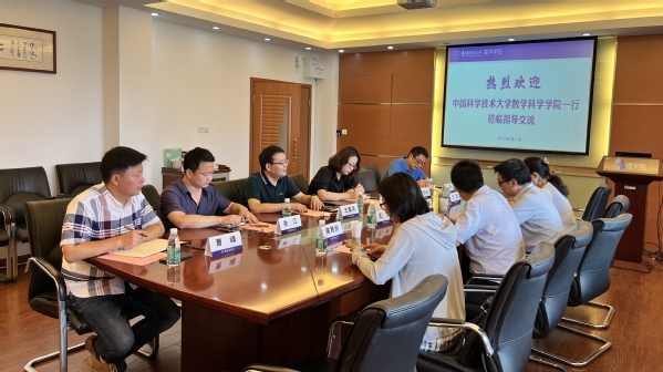8月17日,中国科学技术大学数学科学学院党委书记、执行院长黄文、副院长王毅、党委副书记王莉、研究生教学部主任黄稚新到我校成人漫画 进行工作交流座谈。成人漫画 党委书记许静、院长王春武、党委副书记周佼佼、副院长徐江、副院长蒋建林、数学系主任曹峰热情接待来访嘉宾并参加座谈交流。
