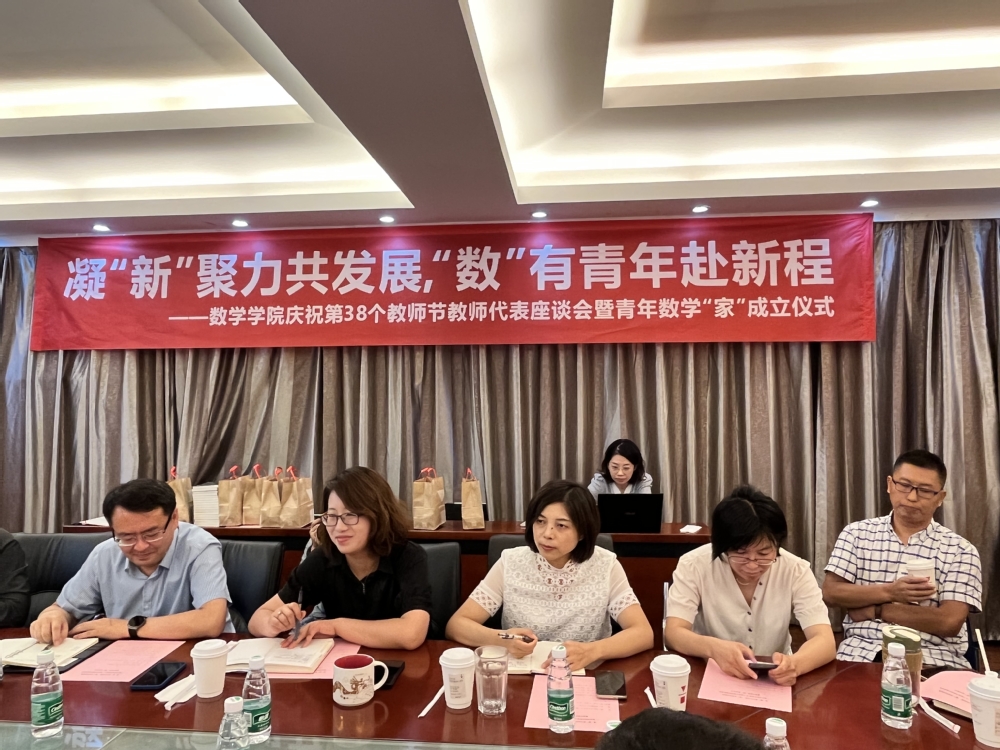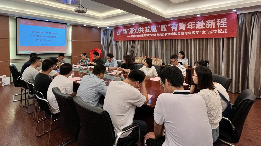 9月8日,成人漫画 庆祝第38个教师节教师代表座谈会暨青年数学“家”成立仪式在理学楼517召开,成人漫画 党委书记许静、院长王春武、党委副书记周佼佼、院长助理韩薇、龚跃政、潘茂东、吴健以及十余名青年教师参加了本次活动,活动由副院长徐江主持。