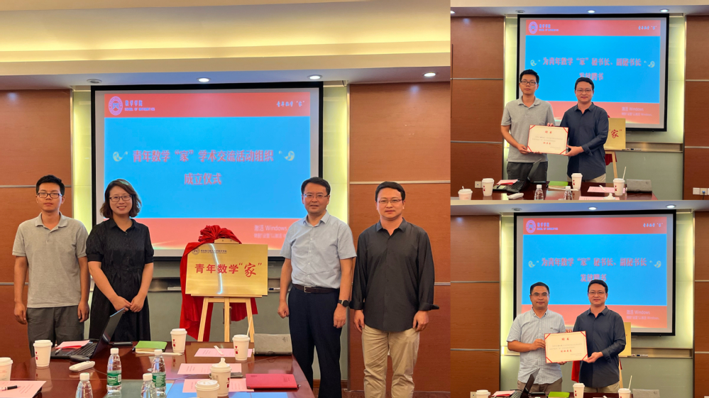 在全体青年教师的见证下,学院领导以及秘书长潘茂东共同为青年数学“家”隆重揭牌,青年数学“家”正式成立,随后副院长徐江为青年数学“家”秘书长潘茂东、副秘书长龚跃政和孙春龙发放聘书。