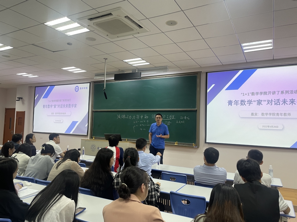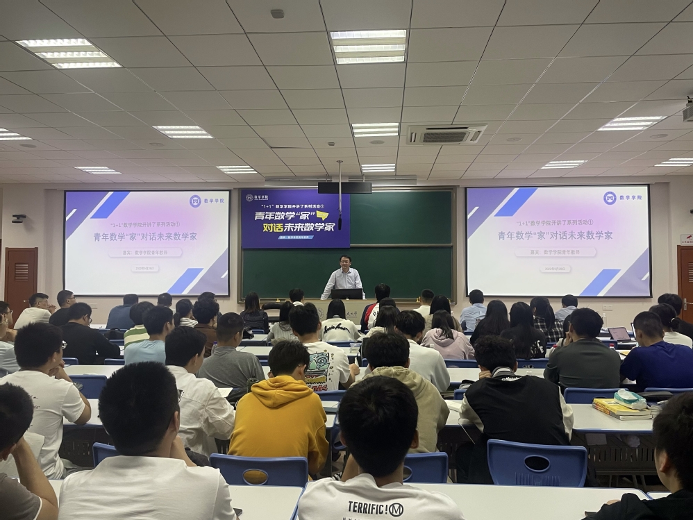 为增进青年教师与青年学子之间的交流,引领学生了解科研、投身科创,9月28日晚7点,成人漫画 在5201举办了青年数学“家”对话未来数学家专题交流活动。学院青年数学“家”团队中10余位青年教师和三个年级100余名学生参加活动。院长王春武、党委副书记周佼佼、副院长蒋建林共同参加活动。活动由院长助理潘茂东、辅导员陈越主持。本次对话交流也是学院“1+1”成人漫画 开讲了系列活动的首场活动。