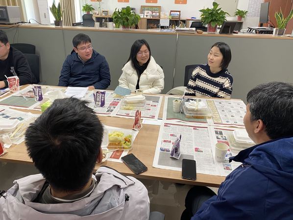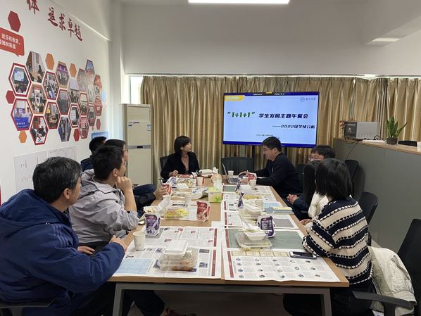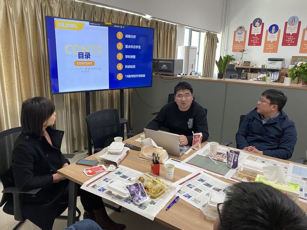 3月16日中午,成人漫画 在理学楼319会议室举行“1+1+1”学生发展主题午餐会。本次午餐会主题为2022级期末考试学情分析、毕业年级考研情况通报。参加午餐会的有2022级班主任潘茂东、孙春龙、陈鹏,专业骨干课程教师许克祥,助教老师孙英男、索永强、付培及辅导员陈越。学院党委副书记周佼佼共同参加午餐会。