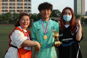 赛后,玛依拉、李振江、迪丽努尔为冠军队员及金球奖、金手套奖同学们颁发了特别制作的奖牌与奖杯。队员们团结奋进、全力拼搏的精神感染了在场的每一个人。