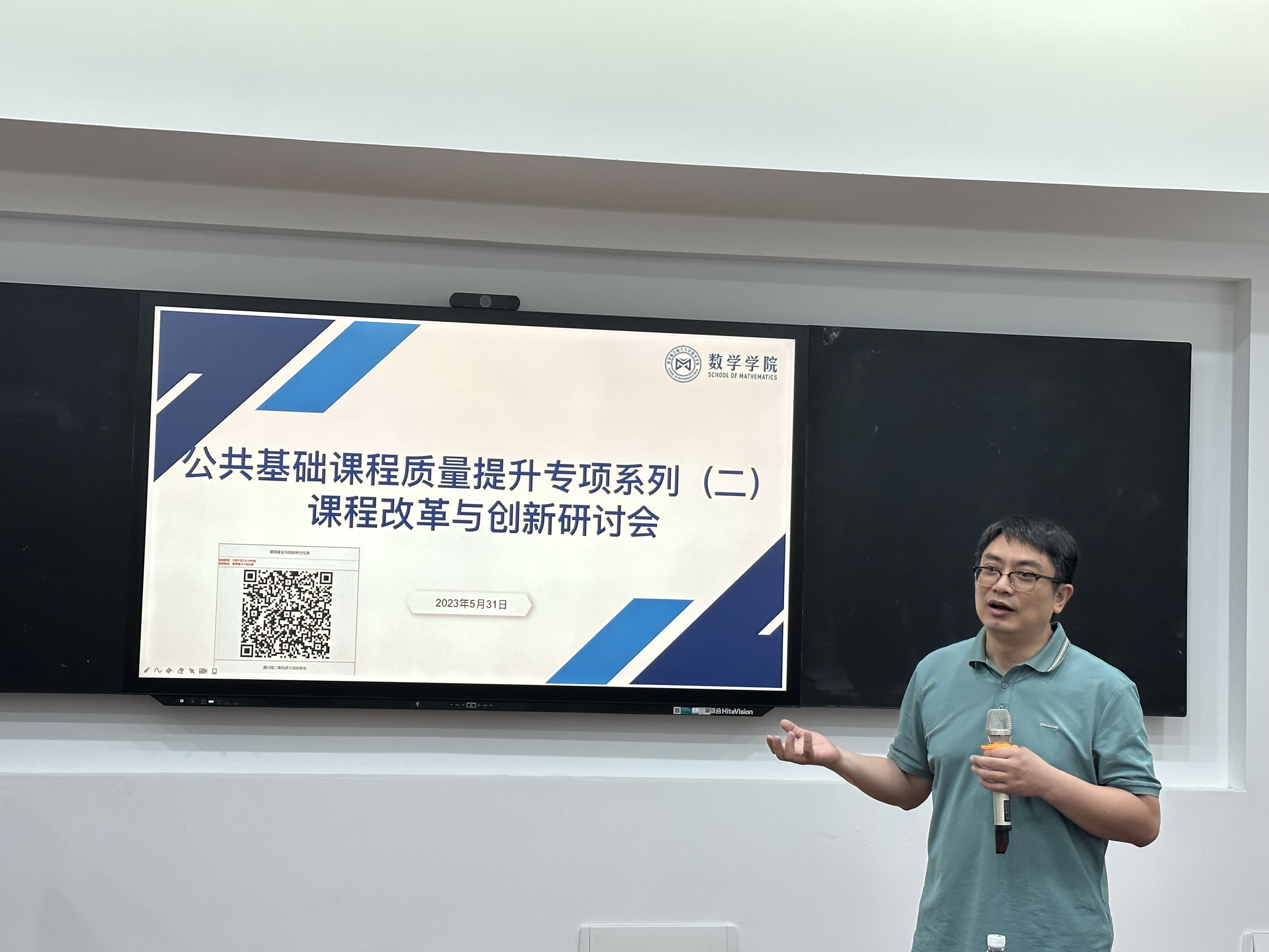龚荣芳老师分享了“101计划”引领下的一流本科课程建设。他从一流课程建设背景、大学数学混合式一流课程的建设、大学数学课程“课程思政”的融入探索、大学数学课程建设成效四个方面阐述课程建设的举措、成果和下一步计划,向与会教师充分展示教学经验。