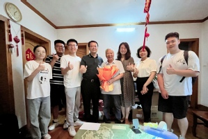 首先,学院一行人来到退休教师叶尔骅老师家中,与叶老师亲切交谈,叶老师深情回顾了学院数十年的发展历程以及60年代在学校从教的经历和趣事,他殷殷叮嘱几位同学:数学是一切科学技术的基础,做学术、搞研究一定要“坐得住冷板凳”,要静下心来踏踏实实搞学术,要打破学科壁垒,用“数学+”攻克技术难题,把基础研究向科技成果转移转化,为国家贡献数学力量。