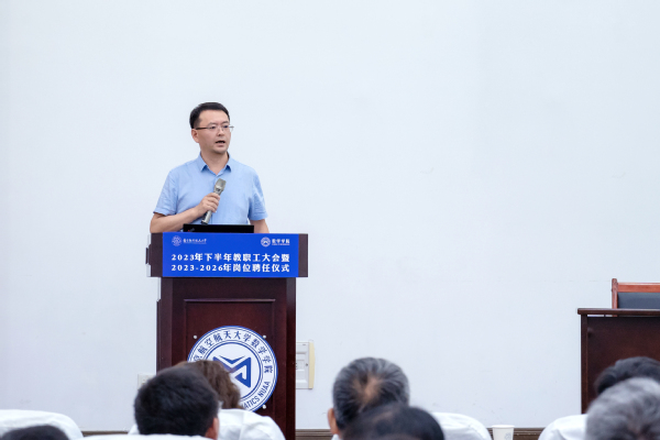 院党委书记许静传达了工信部党组书记、部长金壮龙来校调研指示精神、校党委书记郑永安在2023年下半年干部教师大会上的讲话精神、学校主题教育总结会议精神和学校警示教育大会精神。她指出,上半年,全院以学习贯彻习近平新时代中国特色社会主义思想主题教育为牵引,扎实开展“五学联动”主题学习、大兴调查研究,推动党的理论优势更好转化为能力优势、党的政治优势更好转化为发展优势。她强调,下半年,学院党委将持续深化主题教育内涵,在“从严、从紧、从实”上着力,进一步加强重点领域监督管理,持续巩固深化作风建设,坚持精准谋划,真枪“实”干;坚持正视问题,真抓“实”改;坚持高标作为,真见“实”效,凝聚全体教职工的智慧力量,埋头苦干,追求高效,力争在学院发展新征程上取得更大成绩。