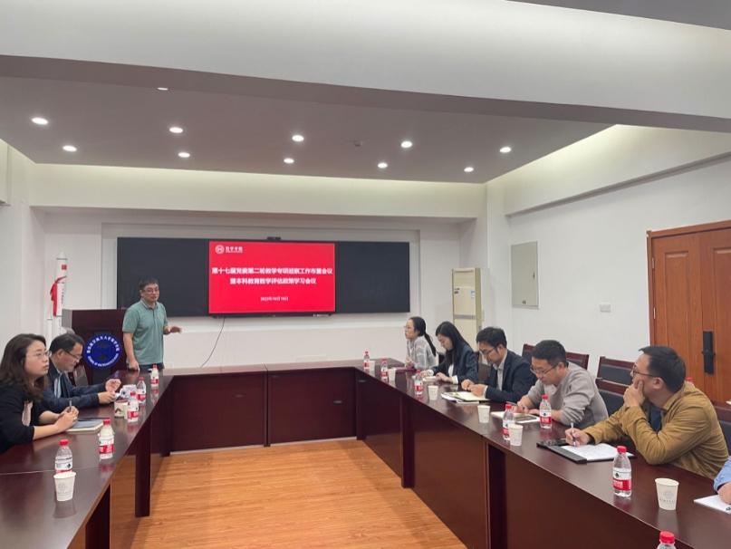 蒋建林介绍了教育教学审核评估工作要点、工作流程和时间节点。蒋建林指出教育教学审核评估对于提高学院教学质量和实现学院发展目标具有重要意义,希望大家高标准、严要求、守底线做好教育教学审核评估工作,并带领大家集体学习了教育教学评估政策相关文件。