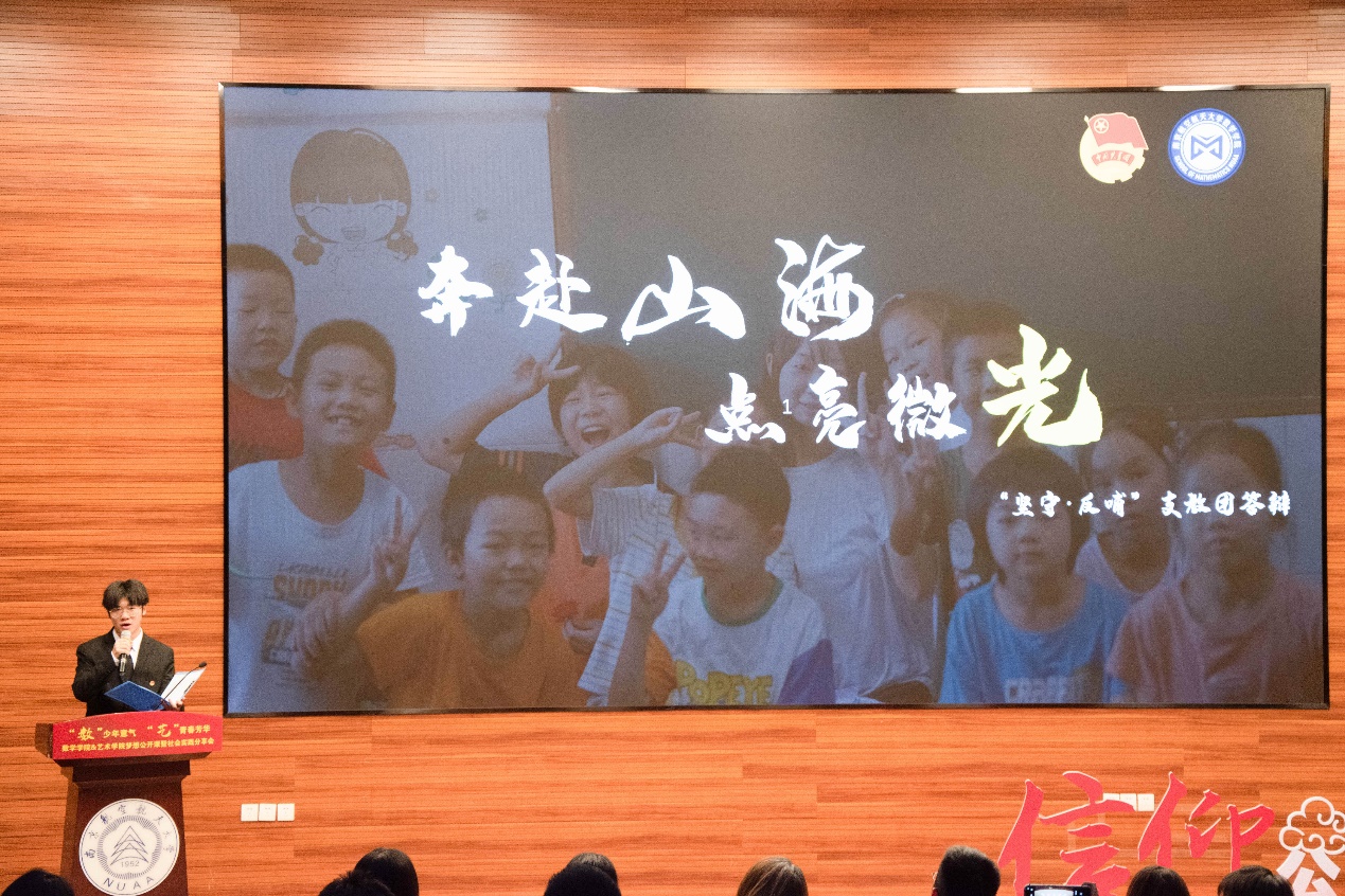 本次分享会以“‘数’少年意气,‘艺’青春芳华”为主题,分为“追寻足迹,绘述红色基因”、“携手逐梦,用心传递温暖”、“见证发展,感悟时代荣光”三个篇章,展现出成人漫画 和艺术学院的学子们强国有我、青春有为的使命担当。