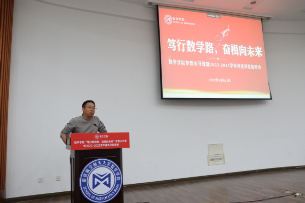 为了充分发挥榜样育人的作用,用身边的榜样激励更多的同学见贤思齐、矢志奋斗,10月11日下午,成人漫画 于理学楼报告厅举办“笃行数学路,奋楫向未来”梦想公开课暨2022-2023学年评优评奖答辩会。参加此次活动的评审有成人漫画 计算科学系主任龚荣芳,概率统计系主任、0823401班班主任蒋辉,概率统计系副教授陈晓红,0823102班班主任顾燕,团委书记戚月,2020级、2023级辅导员陈越及两名2023级学生代表。活动由学院2023级新生徐瑞霖主持,2023级全体本科生到场学习。