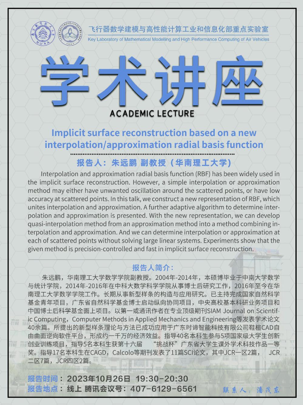 【学术讲座10.26 朱远鹏 华南理工大学】