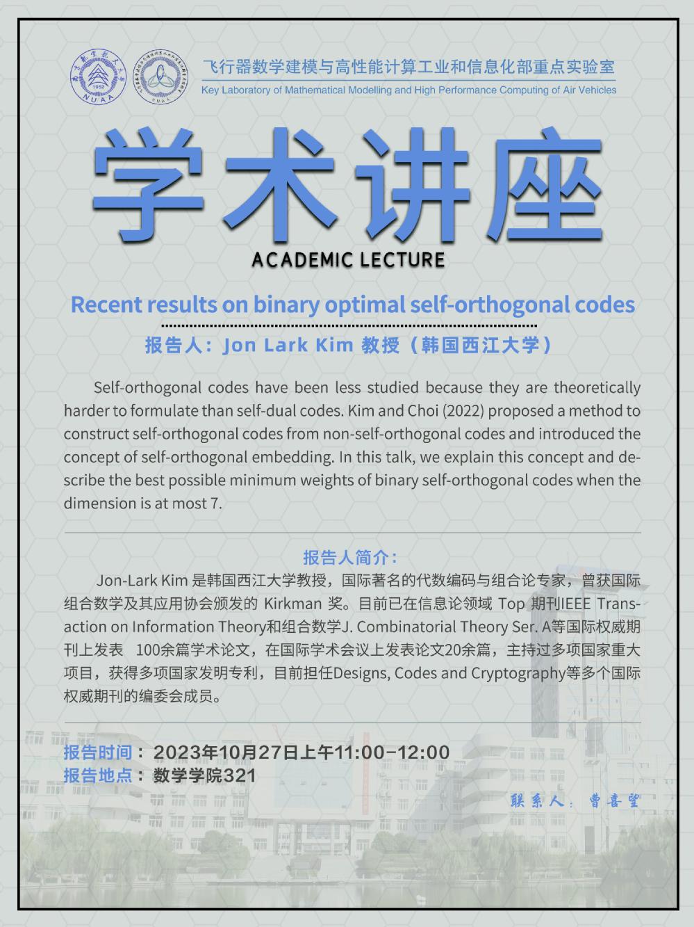 【学术讲座10.27 Jon Lark Kim 韩国西江大学】