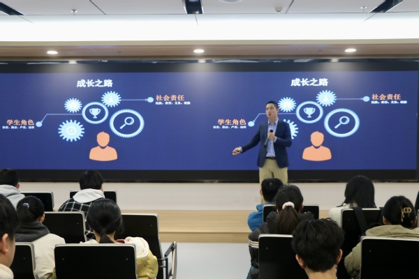 易子淳首先简要回顾了国产商用飞机的发展历程和现状,特别指出商用大飞机的制造不仅仅是一个技术挑战,更是一个国家综合实力的体现。在谈及数学在商用飞机研制中的重要作用时,易子淳详细解析了飞机设计中的众多数学问题,如空气动力学、结构力学、控制理论等。他提到,商用飞机的每一个部分,无论是机翼的设计、发动机的性能优化,还是飞行控制系统的稳定性分析,都离不开深入的数学研究和计算。更为关键的是,目前工程研究中仍急需能够将复杂的工程问题转化为数学问题,并建立数学模型的专业人才。易子淳以此鼓励学生深入钻研数学知识,培养自己的逻辑思维和问题解决能力,为未来参与国家重大工程项目做好充分准备。讲座中,他将大飞机人的奋斗精神融入创业故事,鼓励同学们将个人理想与国家发展结合,保持对国家的热爱和对社会的责任感,在实现个人价值的同时为国家发展做出贡献。