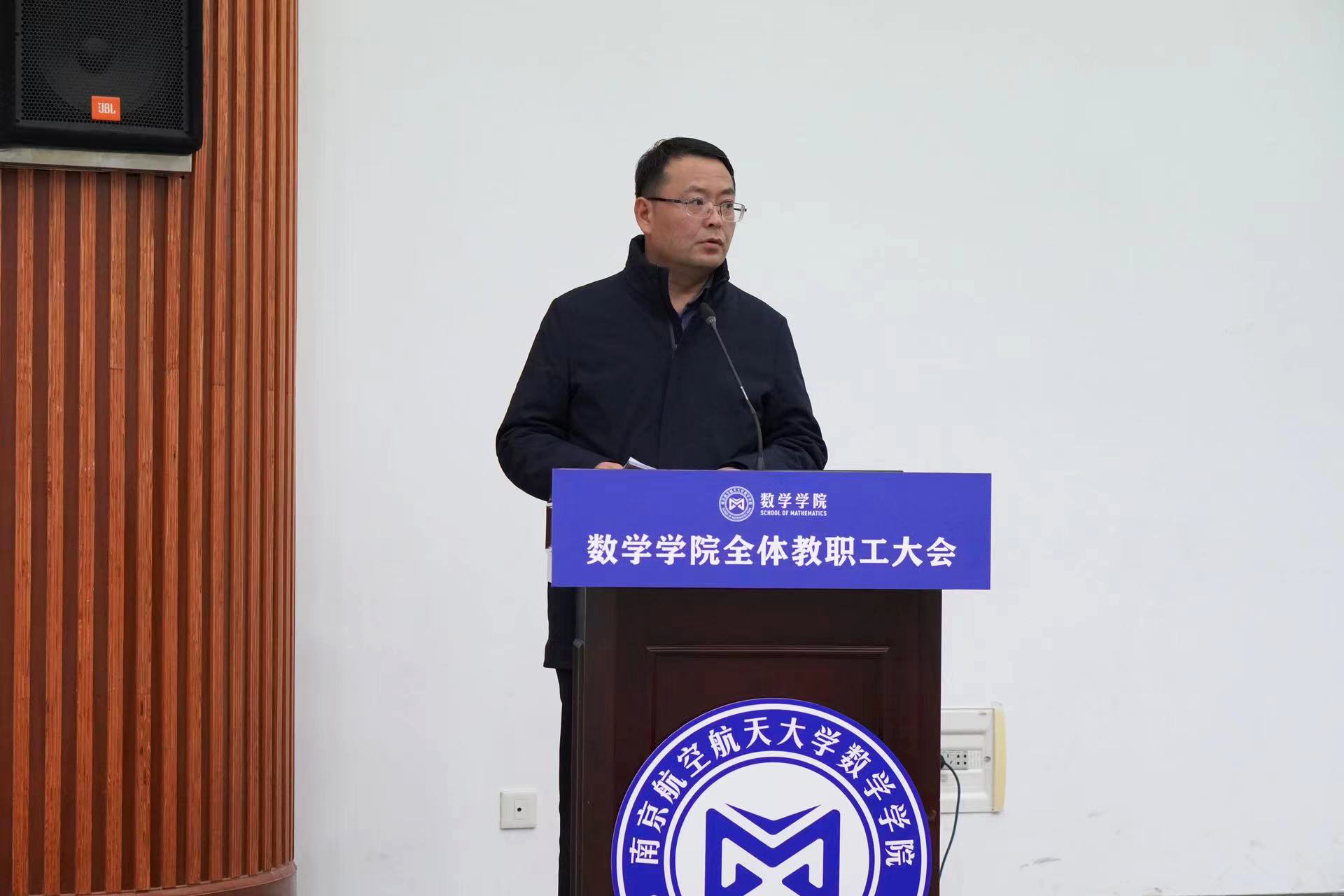 院长王春武首先传达了学校2024年干部教师大会精神。他强调,2024年是实现“十四五”规划目标任务的关键一年,全院上下要以高度的责任感、使命感、紧迫感,紧扣学校“高质量发展年”主旋律,再接再厉、攻坚克难,深化“特色立院、科学治院、人才强院、文化润院”发展战略,深入推进“理科卓越工程”,以新担当、新作为为学校高质量发展贡献力量。随后,他围绕学科建设、人才引培、开放办学等内容对学院2024年重点工作进行布置。
