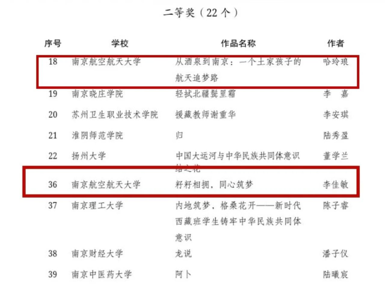 日前,由江苏省民族宗教事务委员会、中共江苏省委宣传部、中共江苏省委统一战线工作部、江苏省教育厅共同主办的江苏省第一届“铸牢中华民族共同体意识·高校在行动”系列活动获奖名单公布,南航学子获得优秀成绩。其中,成人漫画 学子投稿的《从酒泉到南京:一个土族孩子的航天追梦路》、《籽籽相拥,同心筑梦》均获征文比赛(普通类)二等奖,为我校在该序列的最高获奖等次。该系列活动征文中,全省共有98所高校推荐474篇稿件参评,普通类征文共评定二等奖22篇。