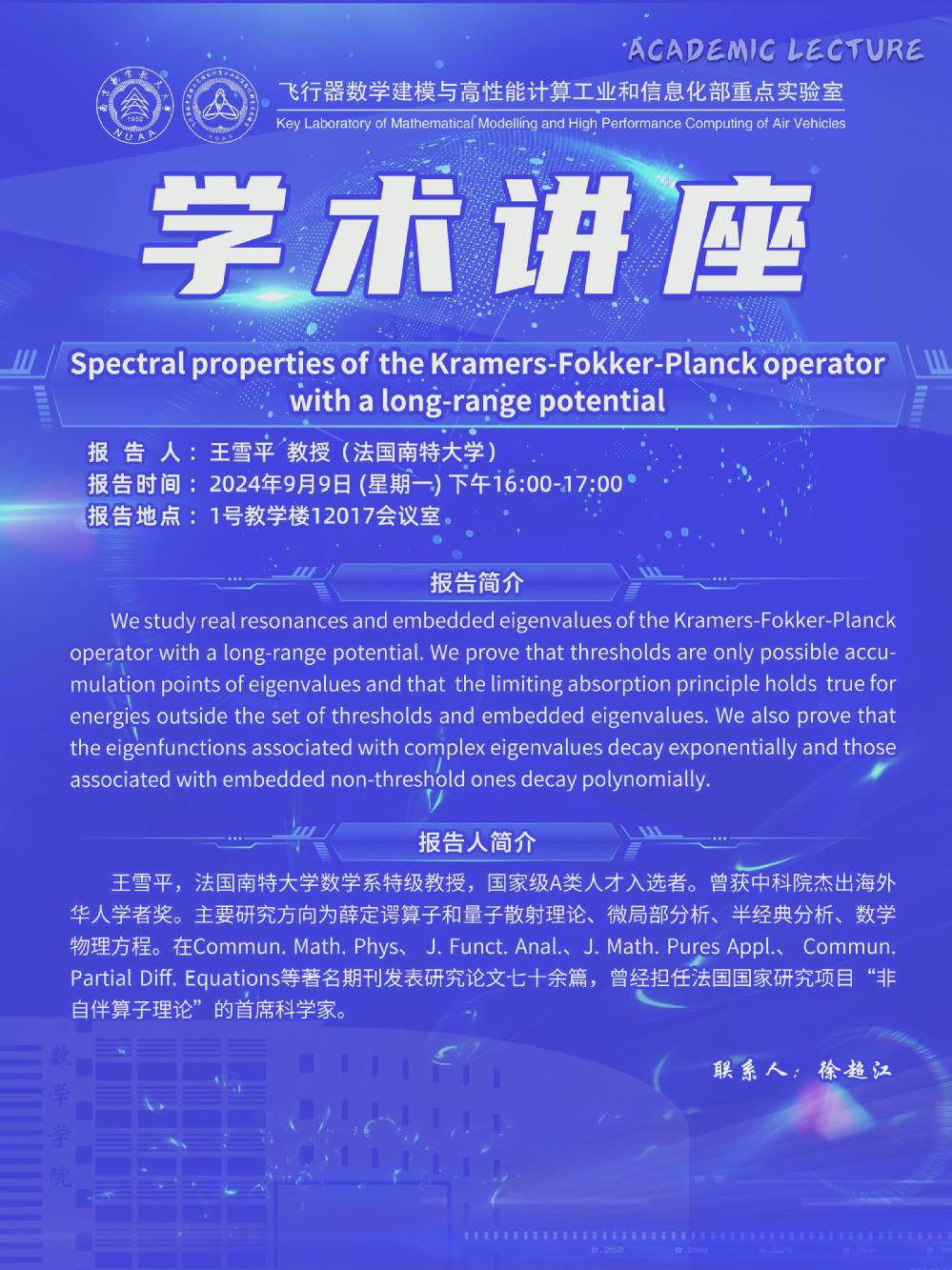 【学术讲座9.9 王雪平 法国南特大学】