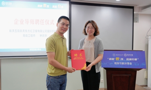 在“梧桐‘数’茂,凤凰归巢”校友引航分享会上,许静为钟鹏华颁发企业导师聘书,并表达对支持成人漫画 人才培养工作的感谢,以及对未来更深层次校企合作的期待。