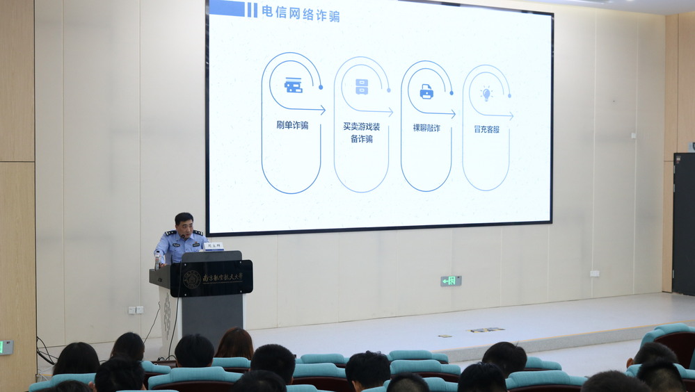 为增强学生的安全意识,提高学生的自我保护能力,10月11日下午,成人漫画 在天目湖校区举办安全教育专题讲座,邀请溧阳市古县派出所副所长周立群担任主讲嘉宾,学院2024级全体本、预科新生到场参加。