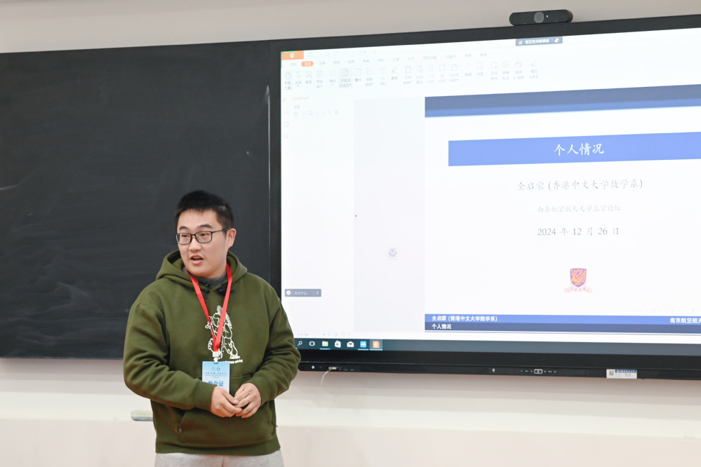 12月26日上午,2024年“长空计划”文理学科群论坛之成人漫画 分论坛在理学楼321会议室成功举办,论坛汇聚了来自北京大学、麻省理工学院、京都大学、墨尔本大学、香港中文大学等全球知名高校的13名优秀青年学者。学院院长王春武、副院长龚跃政、院长助理潘茂东以及各系主任、青年教师代表参加了本次论坛。论坛由潘茂东主持。