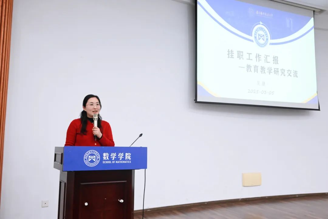 最后,学院院长助理吴健结合在教师发展与教学评估中心挂职的工作经历,分享了参与教育审核评估、校本培训、教师竞赛及调研报告等工作的心得体会,并结合自己在课程建设、教学竞赛和教学评估等方面的探索和实践,深入介绍了教育教学研究工作的实践经验,为学院教师开展教育教学改革提供了有益借鉴。